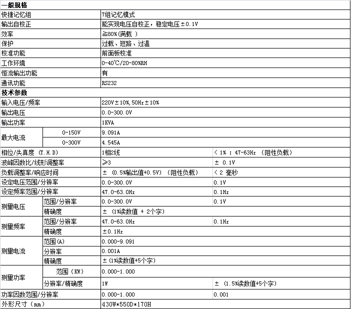 2.     全范圍可調(diào)輸出電壓及頻率設(shè)定范圍(0 - 300V,,47 -63HZ);