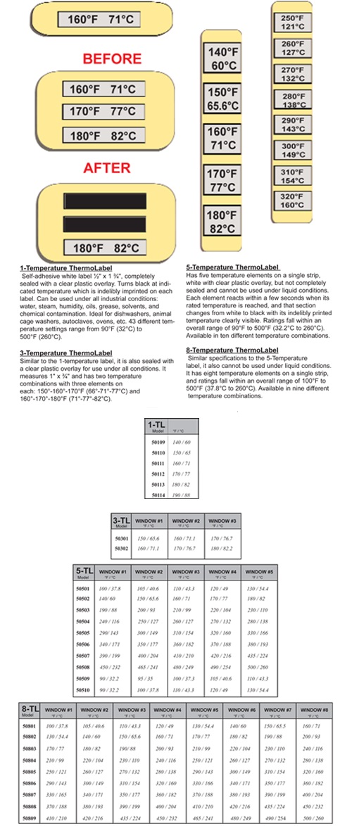 DeltaTrak提供滿足你各種需要的標(biāo)簽:WarmMark溫度標(biāo)簽、高溫?zé)針?biāo)簽和TempDot時間溫度指示標(biāo)簽顯示溫度變 化超過預(yù)設(shè)的時間。FreezeCheck和ColdMark溫度標(biāo)簽用于顯示運輸溫度低于0℃。商業(yè)洗碗機使用的TempDot高溫?zé)針?biāo)簽可顯示最終沖 洗水溫是否達到71℃(HACCP體系所要求的溫度)。 高溫ThermoLabel標(biāo)簽,,型號50101-50809,,準(zhǔn)確價廉,,一次標(biāo)簽提供溫度變化的永久記錄。有一、三、五、八步溫度變化,可從32℃測至260℃。